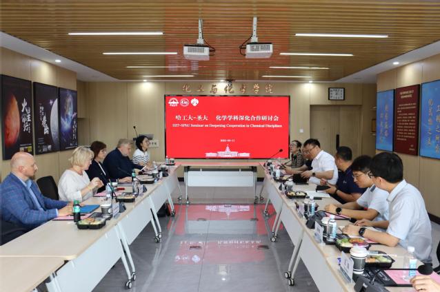 On the afternoon of September 11, 2025, a symposium on deepening collaboration in the chemistry discipline between Harbin Institute of Technology’s School of Chemistry and Chemical Engineering and St. Petersburg State University (SPbU) was held in Lecture Hall D702 of the Mingde Building. The symposium was attended by representatives from both universities. From SPbU: Prof. Irina A. Balova (Dean of the Faculty of Chemistry), Prof. Alina Manshina, Associate Prof. Viktor Korzhikov-Vlakh (Director of the Biomaterials Laboratory), and Prof. Mikhail Ryazantsev (Director of Graduate Programs). From HIT: Liu Guanghui (Party Secretary), Vice Deans Hu Zhen, Lu Songtao, and Lou Shuaifeng, Han Xiaojun (Director of the Department of Chemistry), Prof. Wang Lei (Director of the International Development Center), and Prof. Xu Hong from the Faculty of Humanities and Social Sciences. The symposium was chaired by Vice Dean Lu Songtao.