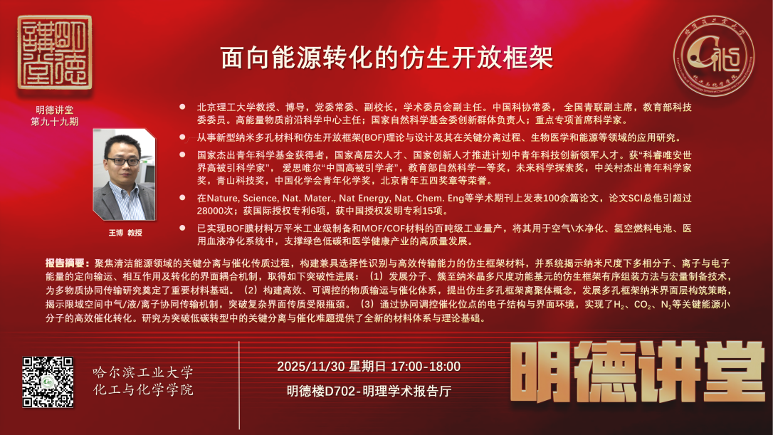 [Mingde Lecture Hall] Wang Bo – “A Bionic Open Framework for Energy Conversion”
